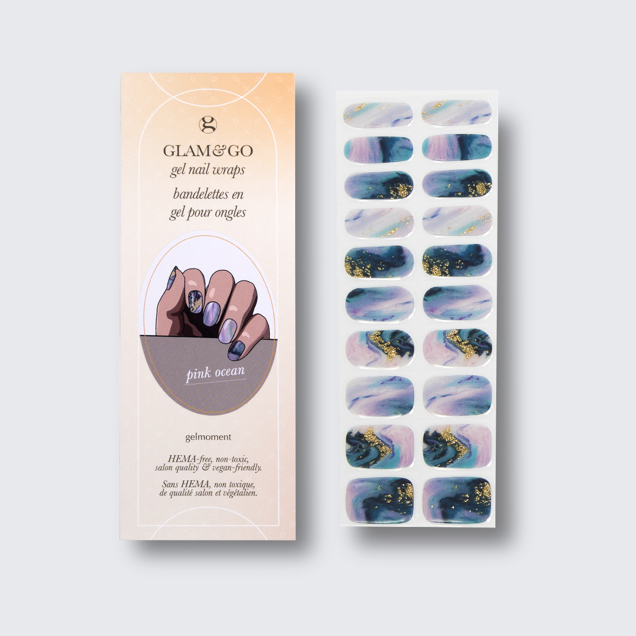 Plus, not only do GLAM & GO gel nail wraps provide the same glossy finish you know and love from our regular gel polish, but they are also HEMA FREE and have a wear time of up to 14+ days.